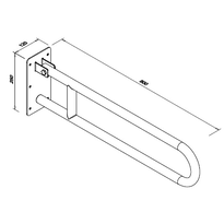 Mango de arco para inodoro para personas con discapacidad, de 800 mm de largo, fabricado en acero al carbono de color blanco. Gracias a la función de inclinación gradual, el pasamanos es perfecto para lugares con espacio limitado. Pasamanos basculante universal y funcional recomendado para aseos públicos y baños privados utilizados por personas con discapacidad. El juego incluye tacos y tornillos de montaje.