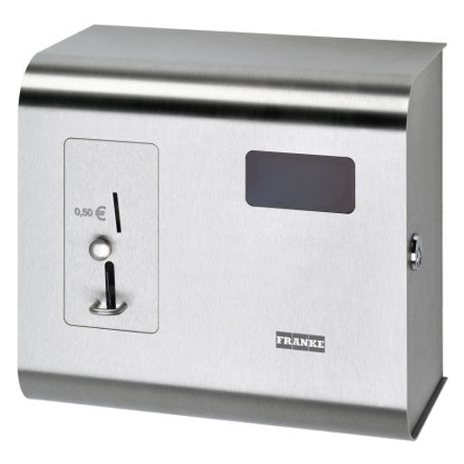 Módulo Franke AQUAPAY para el cobro de tarifas por el uso del agua. Tiene un tiempo de apertura de válvula ajustable, el cual viene configurado de fábrica en 3 minutos y se puede ajustar a 8 minutos. Adaptado a monedas de 0,50 EUR. Fuente de alimentación de 24V. Tiene certificación IP22.