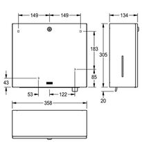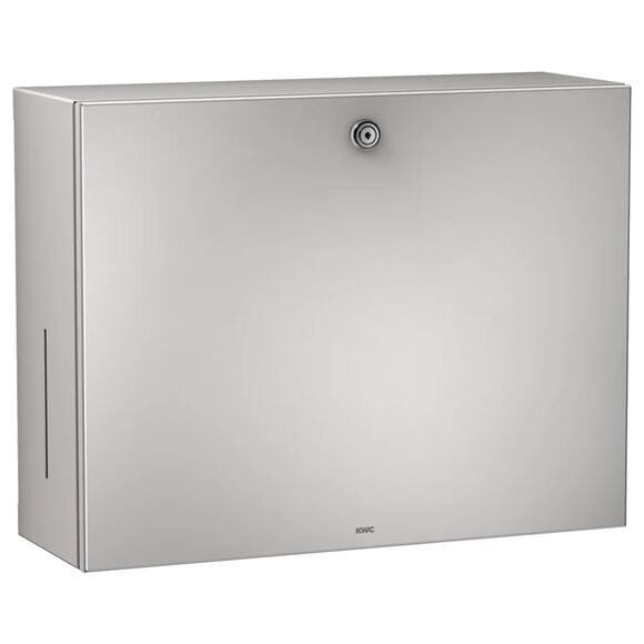 Combinación de un contenedor de toallas de papel ZZ con un dosificador de jabón líquido. El conjunto está fabricado en acero inoxidable con acabado satinado de 0,8 mm de espesor. Dispone de cerradura de cilindro de acero con llave Franke. Mirillas en ambos lados para controlar la cantidad de papel y jabón. Kit de montaje incluido en el precio.