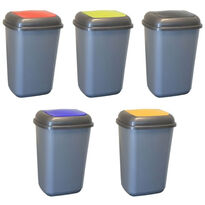 Ein freistehender Abfallsortierbehälter mit einem Fassungsvermögen von 45 Litern besteht aus hochwertigem Kunststoff. Der Korb ist für die Anbringung einer Abdeckung vorgesehen, die in fünf Farben gemäß HACCP-Standards erhältlich ist.