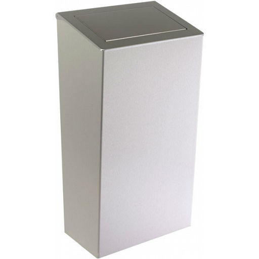 Závesný kovový kôš s objemom 30 litrov. Vyrobené z nehrdzavejúcej ocele, matná povrchová úprava. Nádoba je vybavená krytom, aby obsah zostal neviditeľný. Estetický vo svojej jednoduchosti je základným vybavením verejných toaliet a iných verejných priestorov.