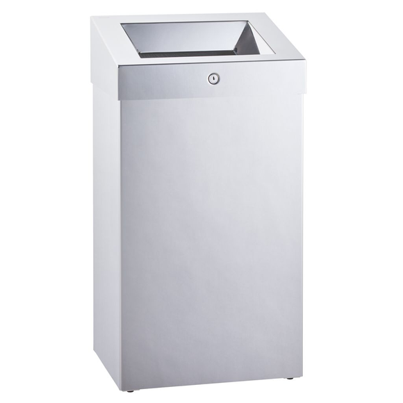 Otvorená nádoba na odpad s objemom 47 litrov, vyrobená z leštenej nehrdzavejúcej ocele, vybavená odnímateľným krytom a vnútorným rámom pre ľahkú montáž tašky. Kôš má pevný uzáver v podobe oceľového cylindrického zámku v jednej rovine s povrchom.