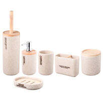 Béžový kosmetický hrnek Bisk, součást sady DAKAR. Je vyrobena z polyesterové pryskyřice. Tento produkt může být dokonalým doplňkem každé koupelny. Cena je pouze za hrnek, na druhé fotografii je celá série doplňků DAKAR.