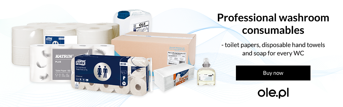 In addition, in our assortment, you will find different kinds of containers - from those for paper towels, through containers for toilet paper, to various other toilet accessories, which will increase the comfort of using these spaces. We also provide bathroom consumables, such as toilet paper, soaps, or paper towels.