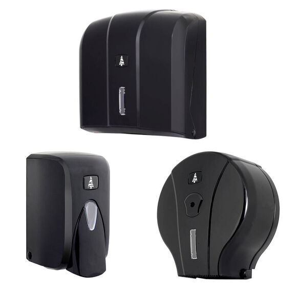 Zestaw: dozownik do mydła w płynie, podajnik na papier toaletowy, pojemnik na ręczniki ZZ Linea czarny ABS