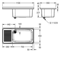 5. Spülbecken mit linker Abtropffläche 1100 × 357 × 550 mm Franke