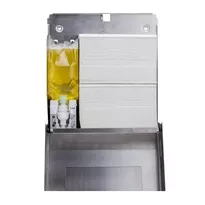 Der Handtuchbehälter mit Fenster zur Mengenkontrolle und der berührungslose Seifenspender sind intuitiv und einfach zu bedienen. Darüber hinaus informieren LED-Anzeigen über die Betriebsbereitschaft des Geräts und die Notwendigkeit eines Batteriewechsels.