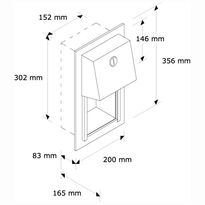 - Abmessungen der Wandöffnung: Breite 159 mm, Höhe 311 mm, Tiefe 86 mm