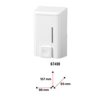 A small liquid soap dispenser made of ABS plastic of relatively high quality and resistance to damage (compared to other plastics ). Thanks to its small size, it is easy to fit into various interiors. Very easy to use, universal. It allows you to maintain an appropriate level of hygiene in places with high traffic.