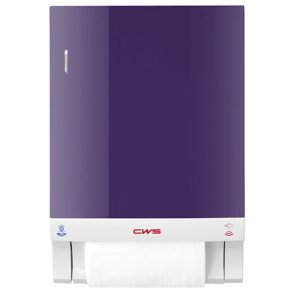 CWS boco purple plastic is a professional and inexpensive dispenser for cotton towel rolls. This dispenser holds one roll. The maximum diameter of a cotton towel tube is 4 cm. The container has a large inspection window, so you always know when it's time to replace the towels. The automatic function allows you to choose how long the dispenser should collapse after use: 1 minute (default), 3 minutes or 5 minutes. The rotary key lock allows you to conveniently lock the BOCO dispenser so that no one can misuse it.