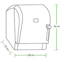 • Versatility: The dispenser is suitable for various types of paper towel rolls, with a diameter of up to 200 mm and a width of 190 to 200 mm.