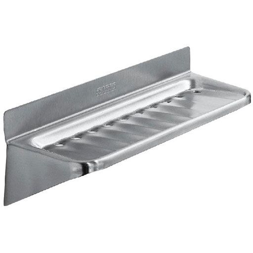 Shelf for surface mounting. Stainless steel, matt ground surface. Material thickness 0.8 mm. Surface with recesses and drainage holes. The set includes stainless steel screws and wall plugs.