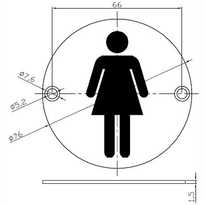 Ladies' toilet signage made of stainless steel in a round shape is an ideal solution for women's bathroom doors. The product is durable and looks good. Moreover, a set of mounting screws is included in the price. We recommend it for public utility facilities, shopping centers, airports, stations, bars and restaurants.