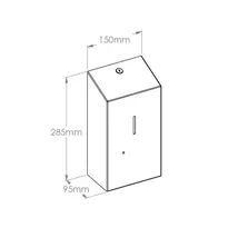 Hecho de acero inoxidable de alta calidad, pintado de negro, el dispensador no solo tiene una apariencia elegante, sino también duradero. Está asegurado con una cerradura de cilindro de acero, que protege el inserto contra accesos no deseados y garantiza un funcionamiento sin fallos a largo plazo.