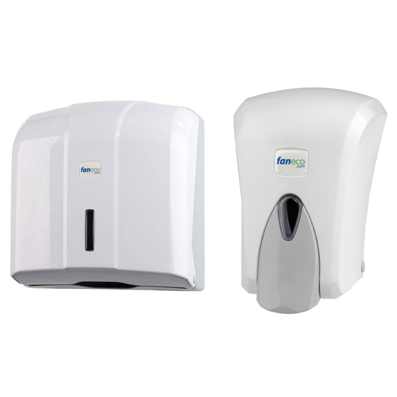 Zestaw: podajnik ręczników papierowych i dozownik mydła w płynie Faneco POP plastik biały