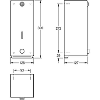 Flüssigseifenspender für die Wandmontage, hergestellt aus 2 mm dickem Edelstahl, was ihn äußerst langlebig macht. Empfohlen für Orte, an denen Sanitäranlagen möglichen Schäden ausgesetzt sind. Es verfügt über ein Stahlschloss mit einem Franke-Schlüssel. Montagesatz im Preis inbegriffen.