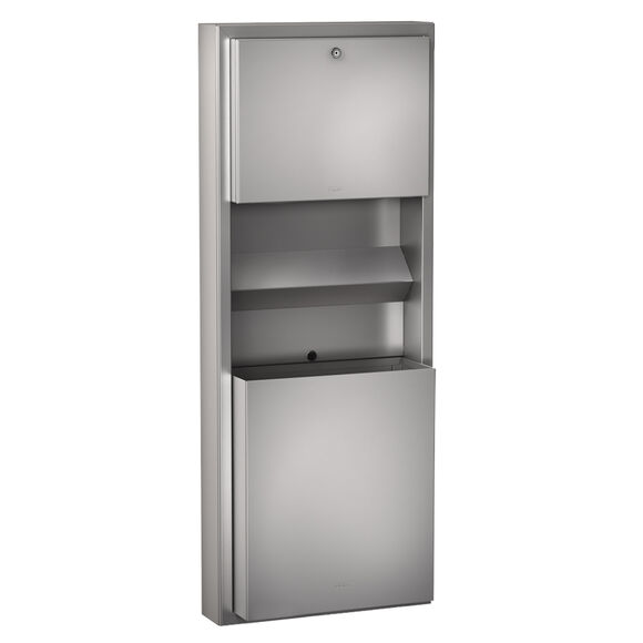 Nerastná oceľ, matne brúsený povrch, hrúbka materiálu 0,8 mm. Válcový zámok s univerzálnym kľúčom Franke. Kapacita ručníkového podávača 300 - 400 kusov v závislosti od výrobcu a spôsobu zloženia. Dispenser je prispôsobený pre tekuté mydlo, emulziu a antiseptické mydlo, má 800-mililitrový nádobu na opakované plnenie a plastovú páku. Kapacita odpadového koša je približne 23 litrov. Súčasťou sú nerezové skrutky a rozporové kolíky.