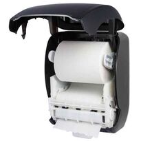 Eine Lösung für die schnelle und einfache Zufuhr von Papierhandtüchern auf einer Rolle. Das große Fassungsvermögen sorgt dafür, dass Handtücher immer verfügbar sind. Der Klebebandabroller füllt sich automatisch von oben. Die automatische Ausgabe gewährleistet eine bequeme Versorgung des Benutzers mit Handtüchern.
