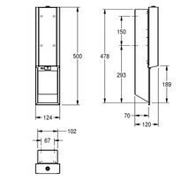 - Rozmery: - výška: 500 mm, - šírka: 124 mm, - hĺbka: 120 mm