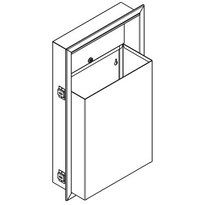 Kovový zapustený kôš pre zapustenú montáž. Objem cca 23 l Nerezová oceľ, matný leštený povrch. Zaoblené hrany. Štandardný cylindrický zámok na kľúč Franke. Odpadkový kôš namontovaný v nástennom ráme. Sada obsahuje nerezové skrutky a rozperné hmoždinky.