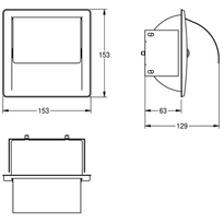 • Dimensiones: - altura: 153 mm, - ancho: 153 mm, - profundidad: 73 mm