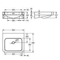 • Umywalka pojedyncza WT500C-M z otworem na armaturę