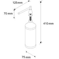 - Abmessungen: - Gesamthöhe: 410 mm / Durchm. Tank: 75 mm, Länge Schwenkauslauf: 125 mm / Höhe über der Arbeitsplatte: 70 mm