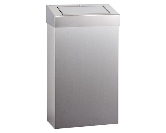 Made of stainless steel with a polished finish, a hanging waste bin with a capacity of 27 liters. The Merida Stella series container has a built-in removable lid with a hinged lid, closed with a spring. The device is equipped with a solid, steel cylinder lock flush with the surface.