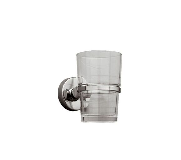 Szklany pojemnik z mosiężnym chromowanym uchwytem zaprojektowany został z myślą o łazienkach hotelowych, prywatnych klinikach i do użytku domowego. Stabilny uchwyt z solidnym mocowaniem przytwierdzanym do ściany zabezpiecza szklane pojemniki. Produkt charakteryzuje się estetycznym wyglądem i solidnym wykonaniem.