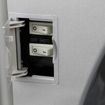 - Hands can be dried with a strong stream of warm or cold air - the dryer has a heater switch