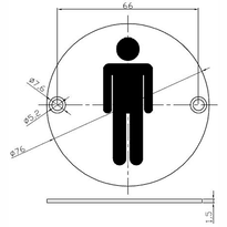 Označenie toalety pre mužov je kovové, okrúhle a pripevnené skrutkami.