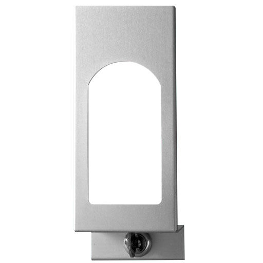 Miešadlo dávkovačov dezinfekčných tekutín chráni ich obsah pred manipuláciou a krádežou. Vyrezaný hľadáčik umožňuje ovládať obsah podávača. Klapka sa dá uzamknúť kľúčom.