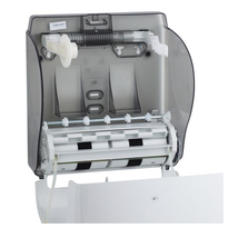 - La carcasa compacta puede contener un rollo de toallas de hasta 250 m de longitud