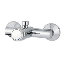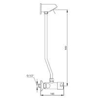 Grifo de ducha con tiempo de cierre automático para montaje en superficie. El mezclador de agua se puede conectar a agua fría y caliente. Equipado con un mecanismo que corta el suministro de agua para el mantenimiento del cabezal. Equipado con un caño con caudal regulable. Diseñado para baños públicos: duradero, resistente al vandalismo, destinado a un uso intensivo. El mezclador se caracteriza por un alto ahorro de agua y energía.