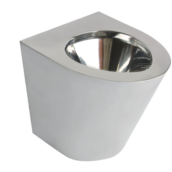 Inodoro de pie fabricado en acero inoxidable mate. Construcción sólida, antivandálica, fácil de mantener limpia. Apto para aseos públicos en instalaciones deportivas, centros comerciales, prisiones, trenes, etc. Sencillo y estable, fijado al suelo.