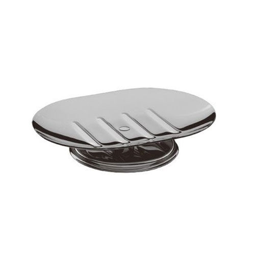 Chrome-plated free-standing soap dish made of chrome-plated brass, a perfect element of hotel, home or office bathroom equipment. It is equipped with a stable handle and an aesthetic soap bowl.