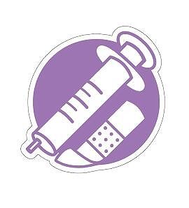 Piktogram fioletowy z symbolem odpadów medycznych przeznaczony do naklejania na pojemniki i kosze do sortowania śmieci lub wózki na odpady. Etykieta samoprzylepna umożliwia bezpieczną zbiórkę i segregację odpadów. Średnica: 20 cm.