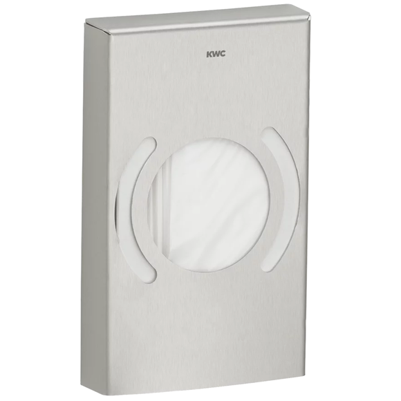Dispensador de bolsas higiénicas para montaje en superficie. Superficie rectificada mate de acero inoxidable con un refinado acabado InoxPlus que reduce las huellas dactilares y facilita su mantenimiento (fácil de limpiar). Grosor del material 1,2 mm. Esquinas no soldadas. Apertura para recogida de bolsas situada en la parte delantera. Asa incorporada para sujetar el cartucho. El juego incluye cinta adhesiva de doble cara, tornillos de acero inoxidable y tacos, así como un paño empapado en acetona para limpiar la superficie debajo de la cinta autoadhesiva.