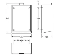 The self-closing, hinged front panel allows easy access to the inside of the container, ensuring hygienic use. The integrated plastic insert makes it easier to manage waste and keep the bathroom tidy.