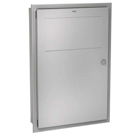 Acero inoxidable, superficie mate pulida, espesor del material 0,8 mm. Tapa de bisagra auto-cierre. Soporte integrado para la bolsa. Cerradura de tambor con llave universal Franke. Incluye tornillos de acero inoxidable y tacos de expansión. Capacidad aproximada de 16 litros.