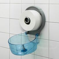 The "JET S" toilet paper container is lightweight, with a trendy and modern design. The combination of blue and partially transparent housing gives it a stylish look. The transparent housing indicates the amount of remaining paper. JET S is easy to mount (wall-mounted), and comes with screws and plugs.