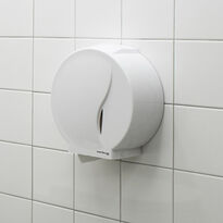 Durch das Design und die Farbe des Gehäuses passt es gut in die Badezimmereinrichtung. Die große Rolle von Jumbo-Toilettenpapier macht es zu einer effizienten Lösung für stark frequentierte Toiletten.