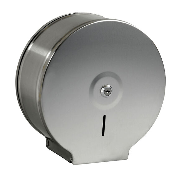 Toilet paper dispenser made of brushed steel, good quality. The capacious housing allows for less frequent refilling of the cartridge. The front cover is lockable and protects against access by third parties. The control window used informs about paper consumption. Works well in places with high traffic.
