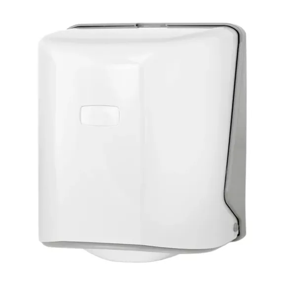 Pojemnik na ręczniki w roli z systemem dozowania jednego listka MINI Sanitario, białe tworzywo ABS