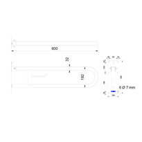 Poręcz łukowa uchylna długości 60 cm wykonana ze stali szlachetnej w matowym wykończeniu, przeznaczona do montażu na ścianie w pozycji poziomej. Poręcz dedykowana jest do użytku przez seniorów lub osoby z problemami ruchowymi.