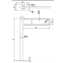 Nerezové zábradlie pre telesne postihnutých, 80 cm dlhé a 80 cm vysoké, vyrobené z leštenej nehrdzavejúcej ocele, určené na inštaláciu na podlahu. Táto sklopná rukoväť je ideálna pre kúpeľne a toalety pre osoby so zdravotným postihnutím. Kúpeľňová kľučka certifikovaná Národným inštitútom hygieny.