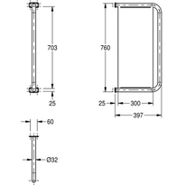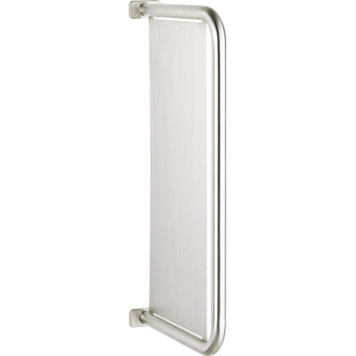 Wand-Urinaltrennwand. Edelstahl, matt geschliffene Oberfläche. Materialstärke 1,5 mm, Rohrdurchmesser 32 mm. 2 Abdeckkappen aus Edelstahl. Schrauben und Dübel im Lieferumfang enthalten.