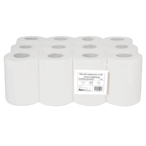 Ręcznik papierowy w rolce Faneco Optimum 12 szt. 2 warstwy 60 m biała celuloza + makulatura