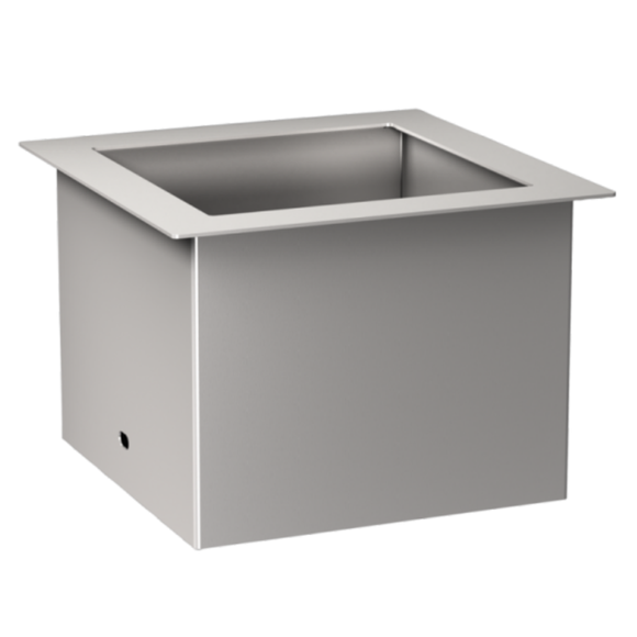 Waste container chute. Built-in washbasin shelf. Stainless steel, brushed matte surface. Waste container must be purchased separately.