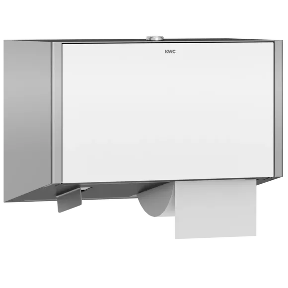 Moderný a funkčný držiak na dve rolky toaletného papiera EXOS od značky KWC, ktorý sa vyznačuje elegantným vzhľadom a odolnosťou. Inovatívny dizajn s uzavretým krytom a systémom automatického uvoľňovania záložnej rolky papiera zaručuje pohodlie a hygienu pri používaní. Ideálna voľba pre kúpeľne s vysokým štandardom, v domácnostiach a verejných priestoroch.